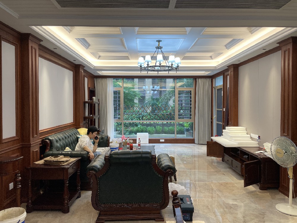 今天給大家分享一套美式風格樣板房案例。這套樣板房是廣西臨桂專賣店譚總去年打造的一套大平層樣板房。整套樣板房由專賣店全程參與打造,施工按照公司標準落地,部分頂面還試用公司頂面L型龍骨打底,整體下來硬裝效果非常不錯。現(xiàn)階段軟裝還未全部完成,硬裝柜子部分還有部分門板需進行調整,因此現(xiàn)場拍攝的一些照片并不是···