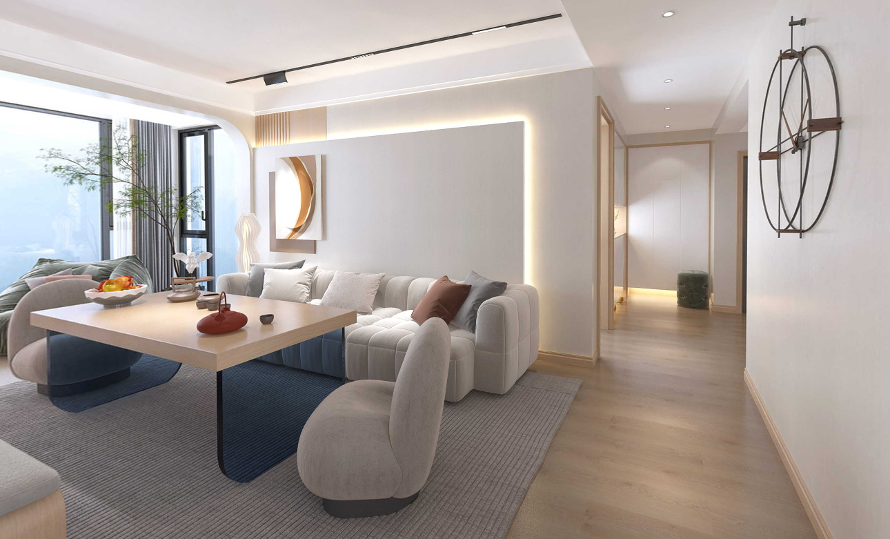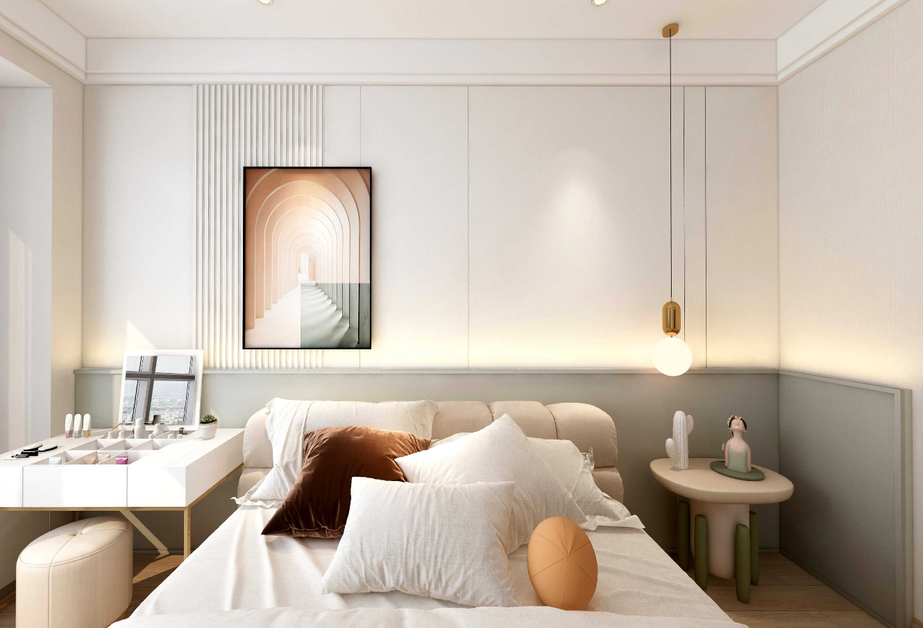 設計說明:以干凈、明亮的暖色調,表達女主對生活的包容和內心的柔軟。客廳兼顧茶室功能,讓品茶會友、親子互動等,使用更為靈活,共享影音美好。入戶巧設瑜伽房,主臥打通小臥室做衣帽間,次臥放沙發床秒變小會客廳,也可以是娛樂室,偶爾邀來閨蜜,私享靜謐時光。正如女主對生活的態度一樣,精致放松、獨一無二。慢下來,才能真正地享受歲月靜好。認真生活,便能找到生活藏起來的糖果。